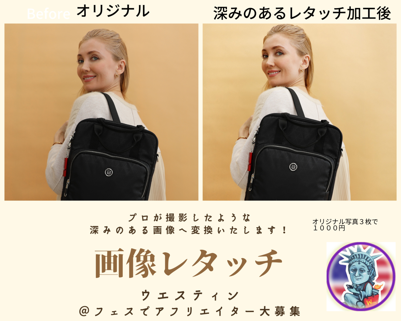 長年ECサイトを運営してようやくたどり着いたレタッチ方法を使って皆様の写真を奥行きの深い写真にレタッチさせていただきます。