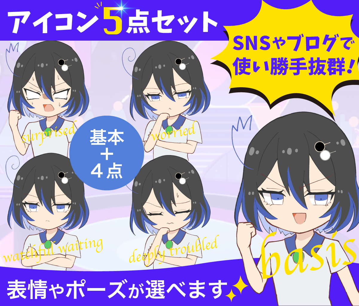 ゲーム公式からイラスト部門優秀賞を4度受賞した絵描きが、使える表情やポーズを数パターン用意したイラストセットをお届け✨ブログのファン作りを強化したい方などにおすすめ😊商用利用・二次利用もOK!