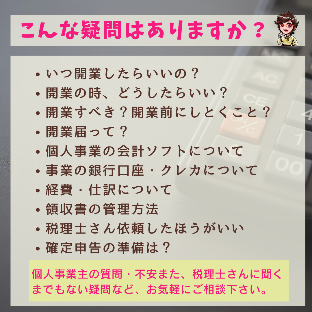 副業しよう!としたとき 個人事業にしたほうがいいの?開業するには?何でもご相談ください!