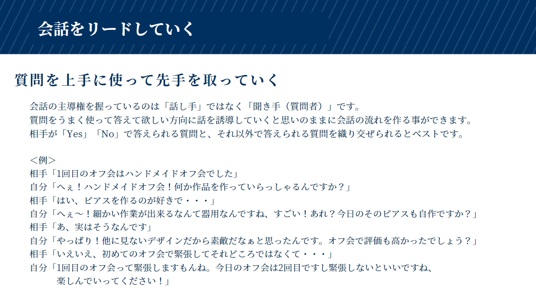 会話の始め方、質問の投げ方、会話の繋げ方