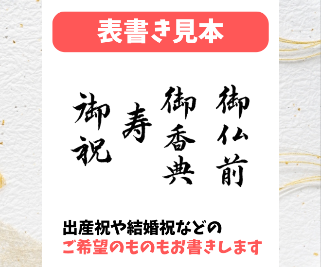 祝儀袋や香典袋などの表書きを代筆いたします。
