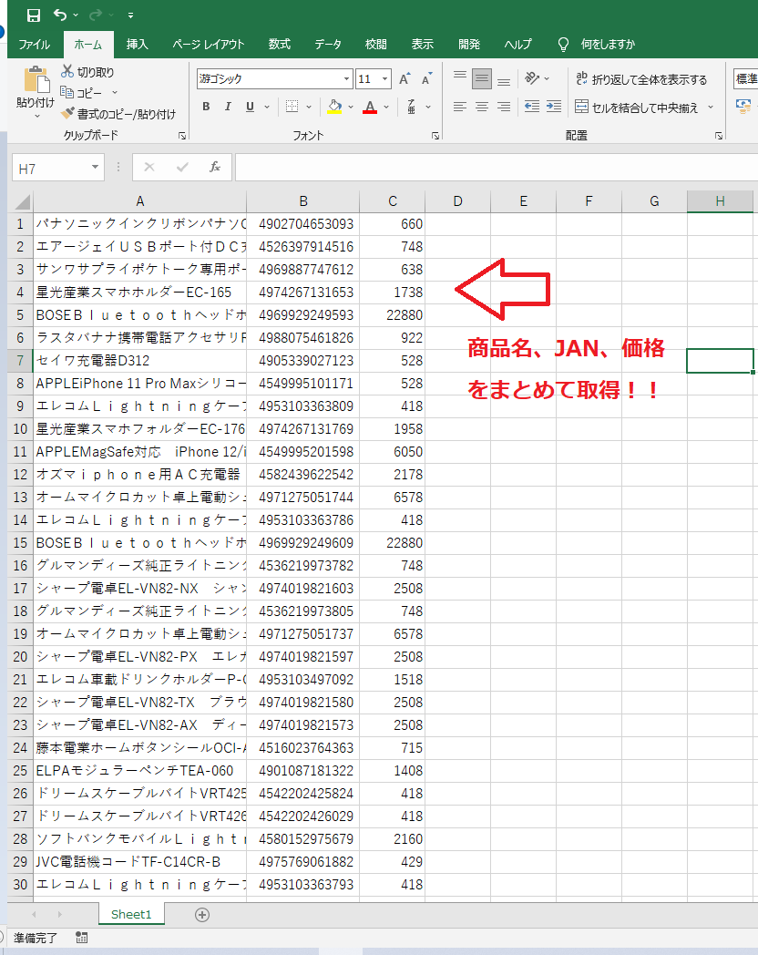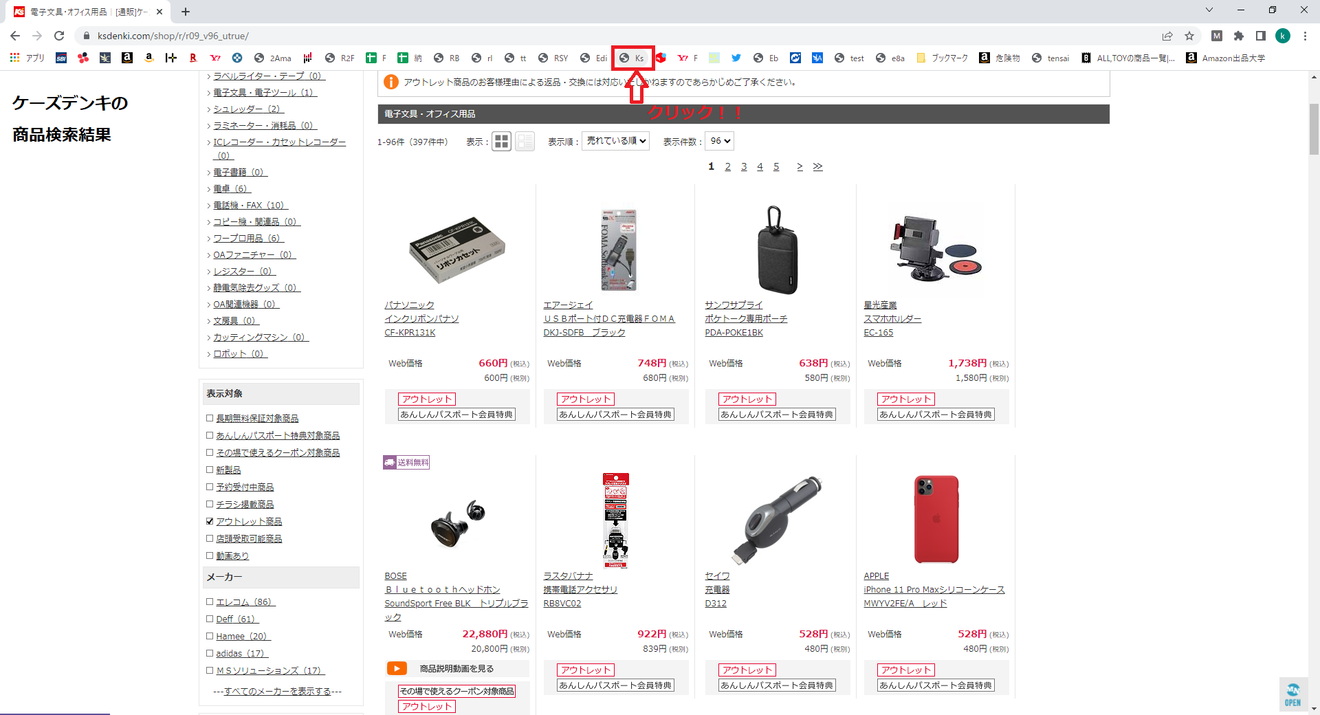 ブックマークバーをクリックするだけでプログラムを実行し商品情報を取得できます🙆♀️