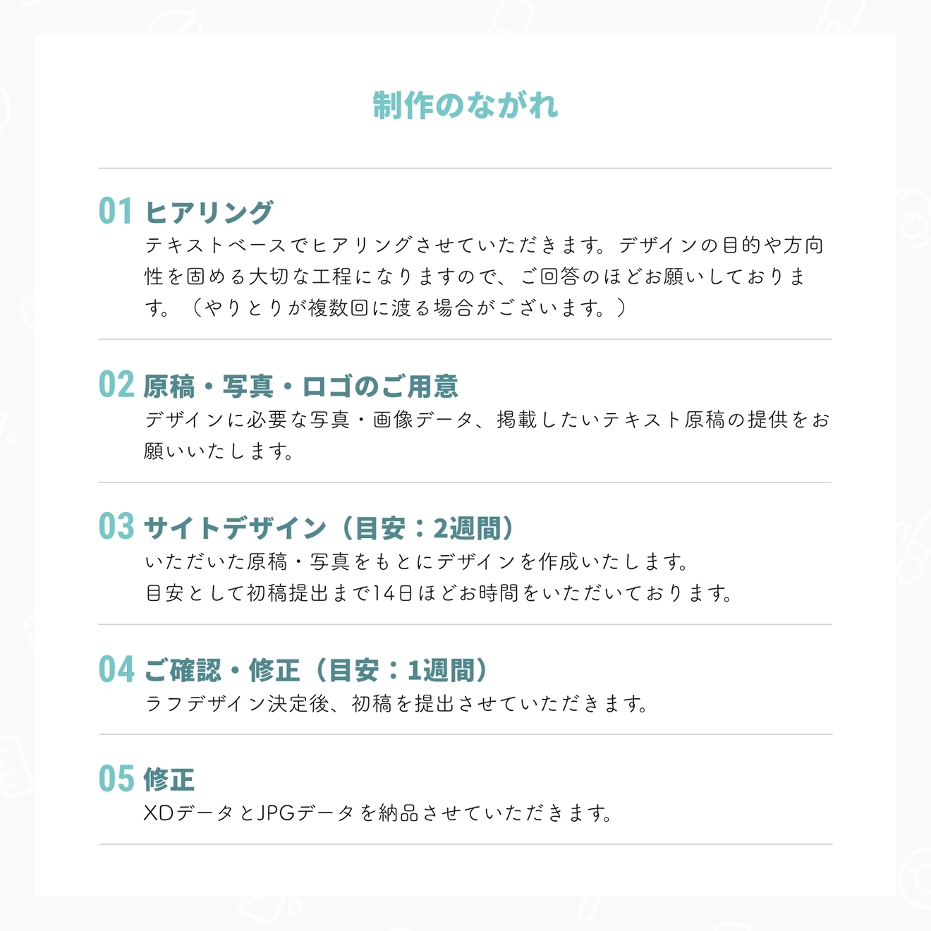 テキストベースでヒアリングさせていただきます。デザインの目的や方向性を固める大切な工程になりますので、ご回答のほどお願いしております。(やりとりが複数回に渡る場合がございます。)