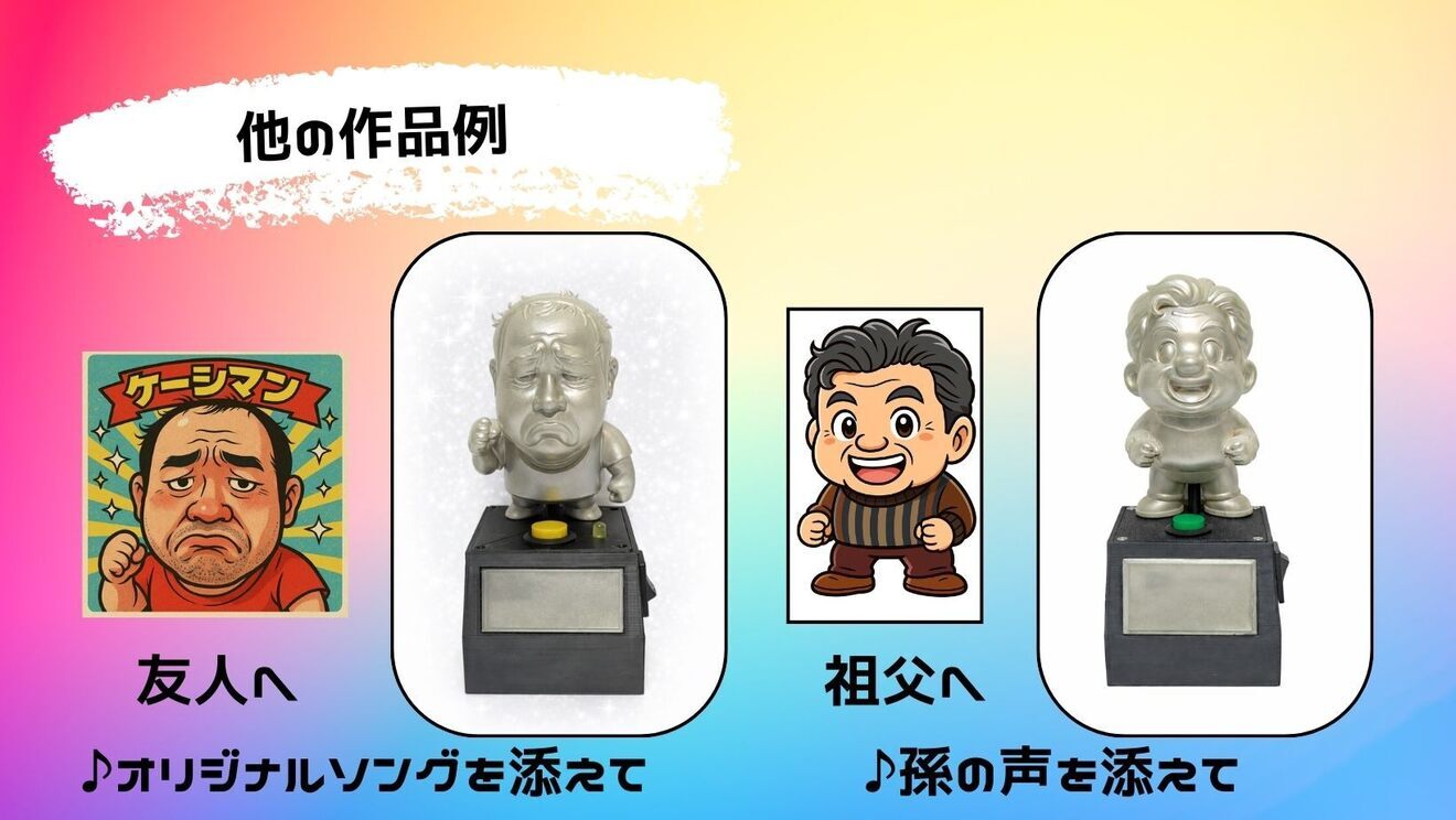 オリジナルの音が鳴るフィギュアを制作します。 【お試し出品】のため、価格を低めに設定しています。 フィードバックにご協力いただける方のみご購入ください。 注意事項を必ず最後までご確認ください。