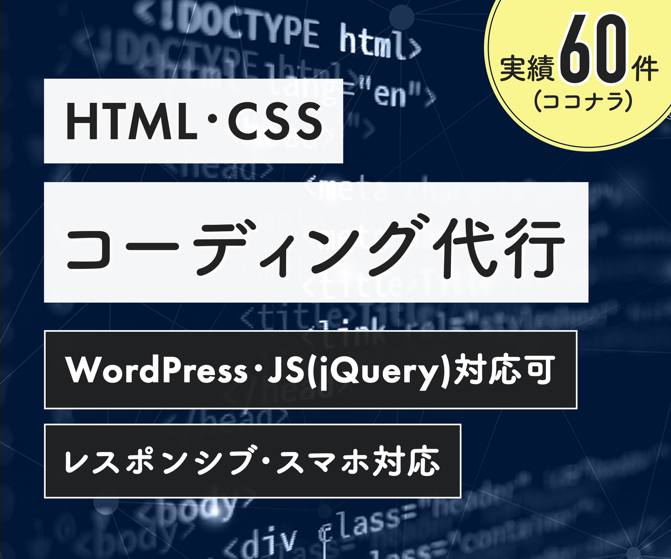 \ココナラでは60件(全て最高評価5)の実績有/ デザインカンプからHTML・CSSでコーディングを行います! WordPress化・jQueryの対応も可◎ デザインスキルを活かした提案型対応も可◎