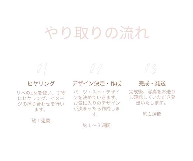 *DMメインでやり取りを行いますが、イメージが伝わらない場合は、 ZOOMを繋いて擦り合わせをすることも^^