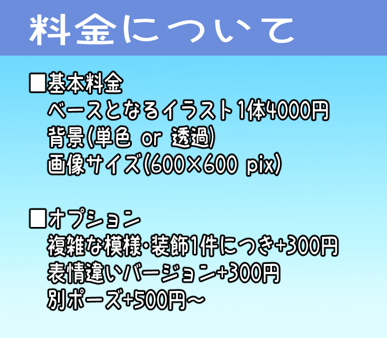 ・納品したイラストはサンプル画像として公開させていただく場合があります