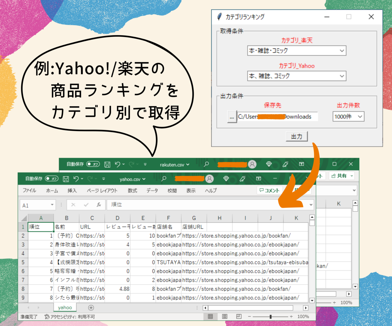 ・Yahoo!/楽天の商品ランキングをカテゴリ別で取得