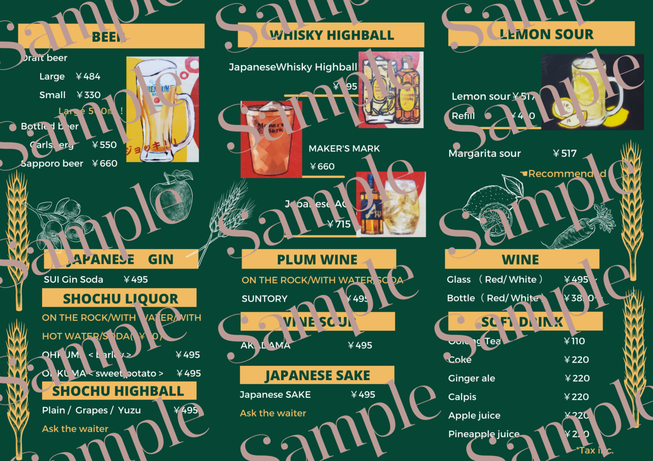 日本語メニューのデザインを提供いただける場合はお値引きさせていただきます。