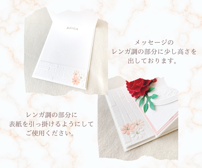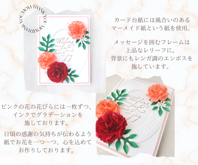 カードにあしらったカーネーションは「紙」で一つ一つ丁寧にお作りしております。