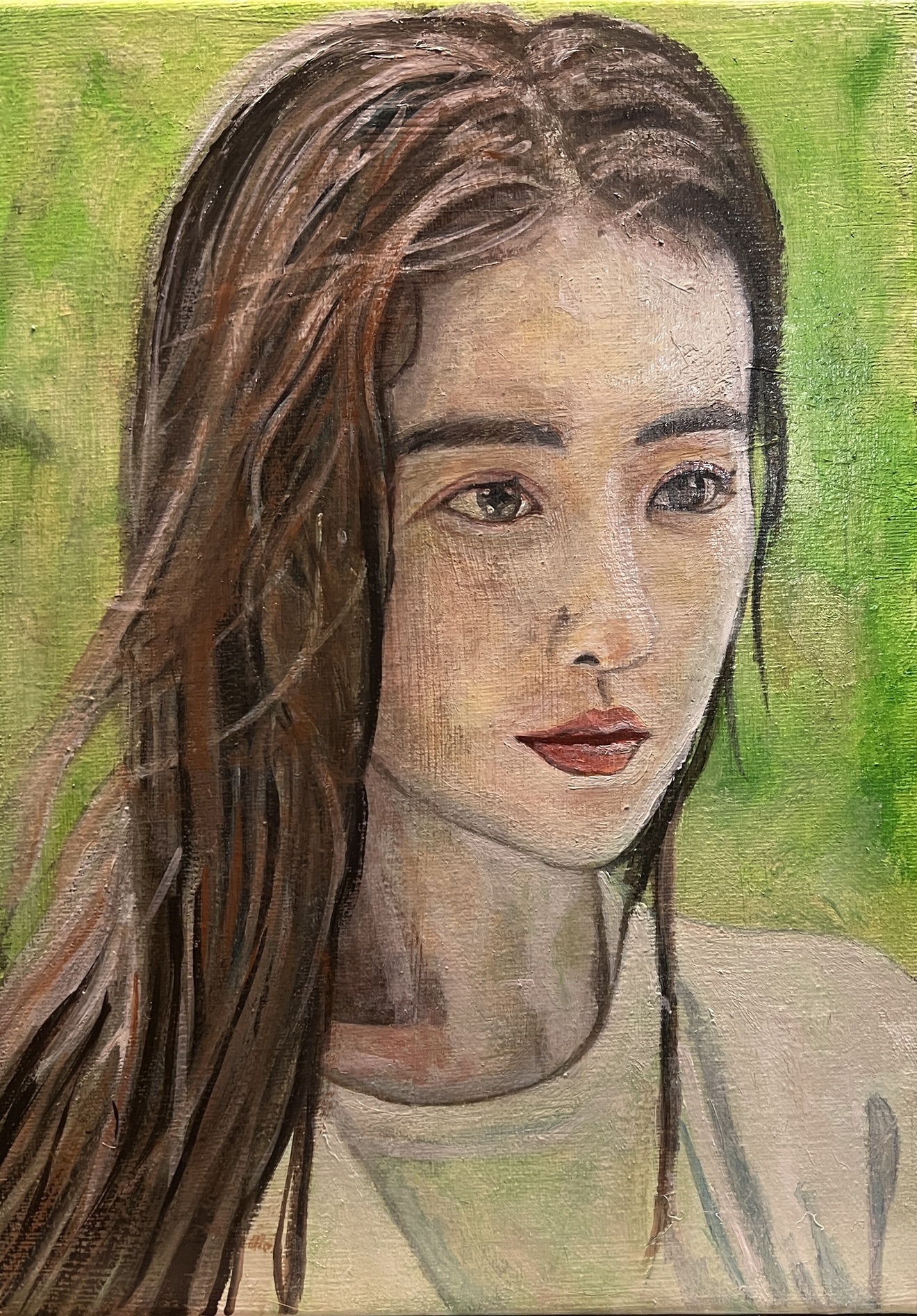 ①御依頼の写真からイメージして、描く人物を油彩やアクリル画でキャンバスなどに描きます。