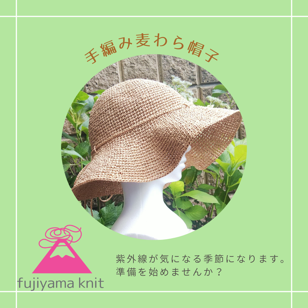 【手編みの麦わら帽子】 お好みのデザインでお作りします