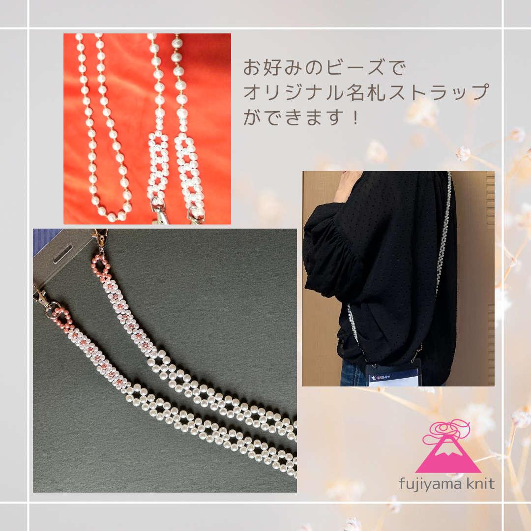オフ会用の名札に使うショルダー・ネックストラップをお作りします。可愛いパールビーズを使ったストラップで気分も上げていきませんか!?お好みのデザインでお作りいたします。