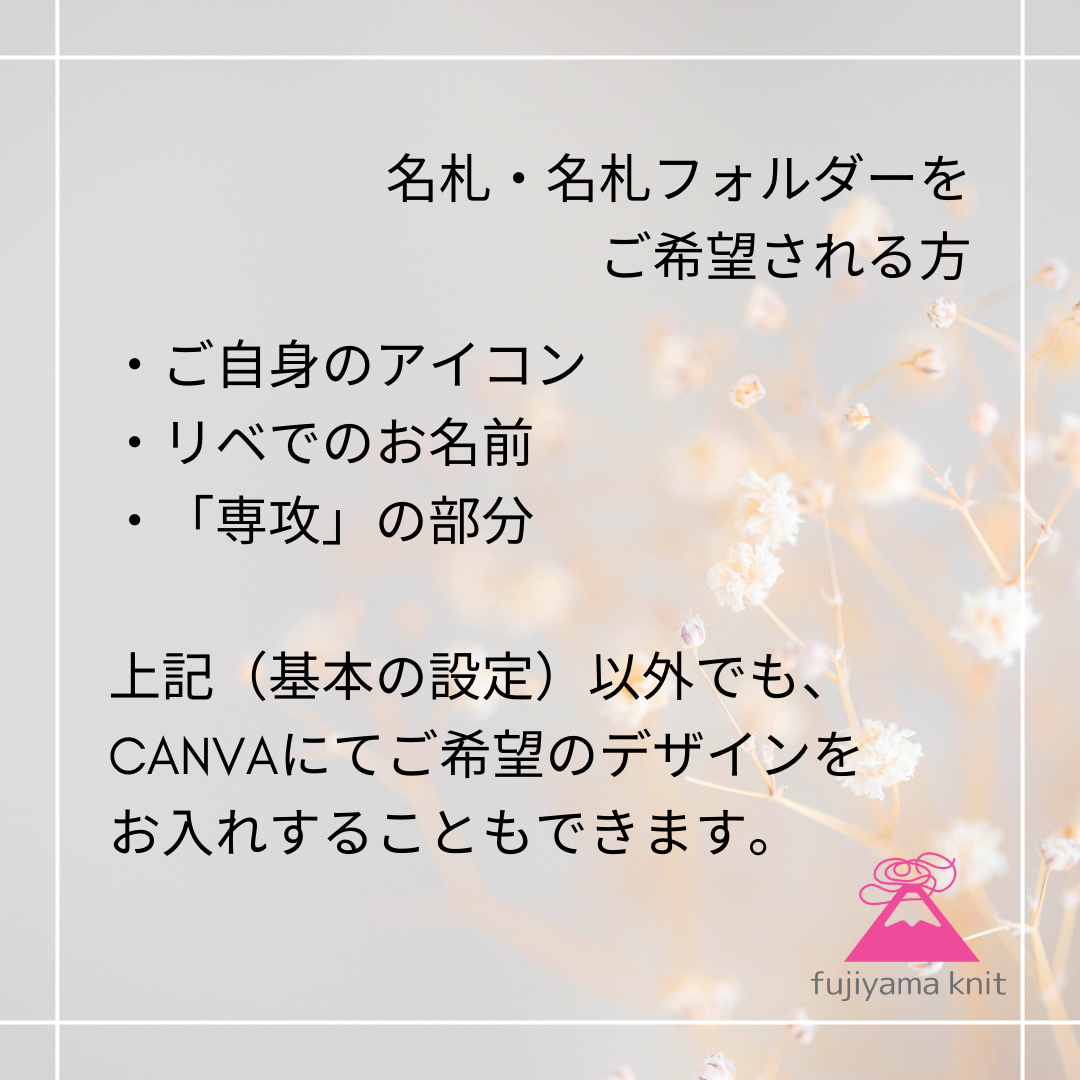 アイコンがあれば名札の印刷+ハガキサイズのケースもオプションでお付けできます(+500)。