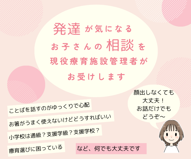 現在勤務する療育施設で毎日子育て相談にのっておりますので